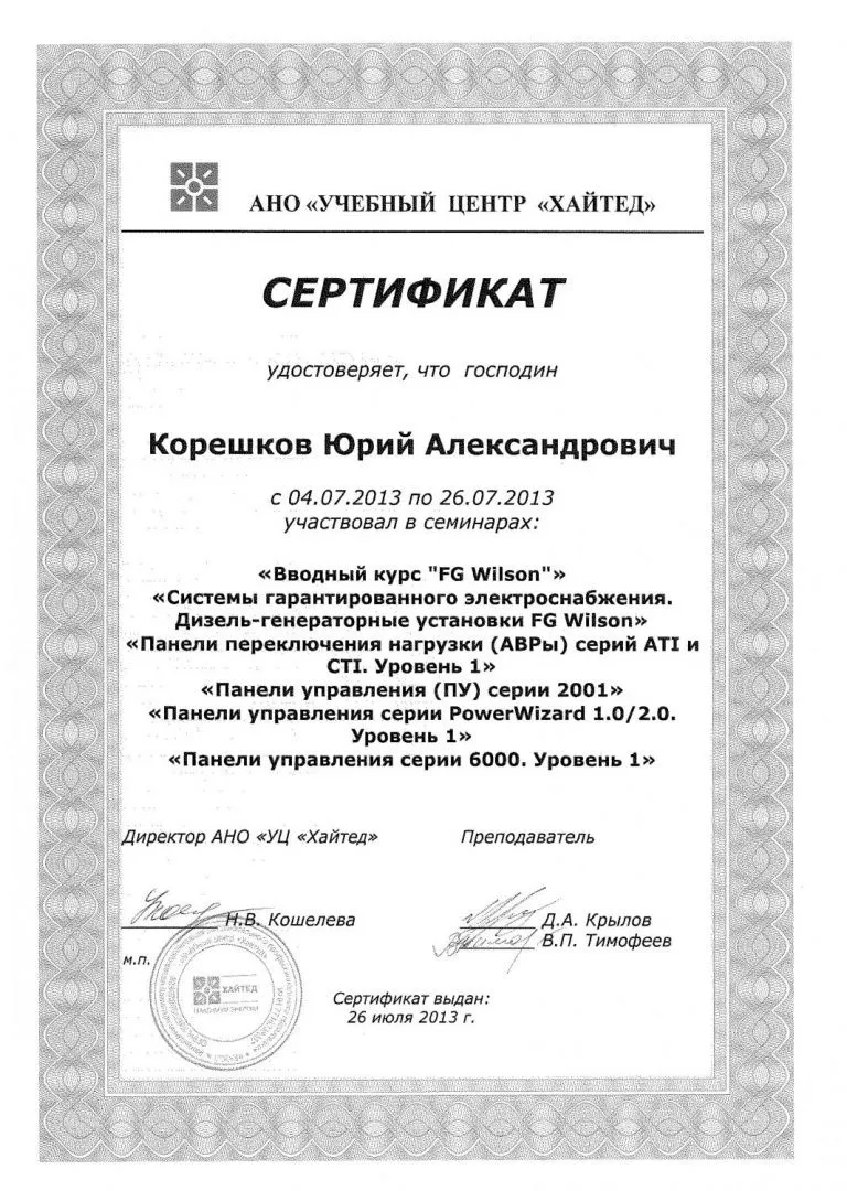 Сертификаты по ремонту двигателей
